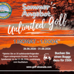 Die „Golf-Tageslizenz“ kann zum Zeitpunkt der Buchung online abgeschlossen werden. Ansonsten muss diese im Pro-Shop bezahlt werden.