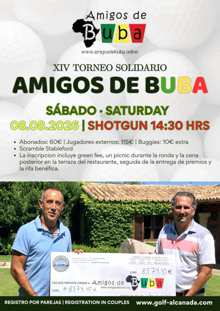 - La cuota de inscripción incluye el green fee, un picnic durante la ronda y la cena posterior en la terraza del restaurante, seguida de la entrega de premios y la rifa benéfica. ¡Solo se acepta efectivo para la rifa benéfica!