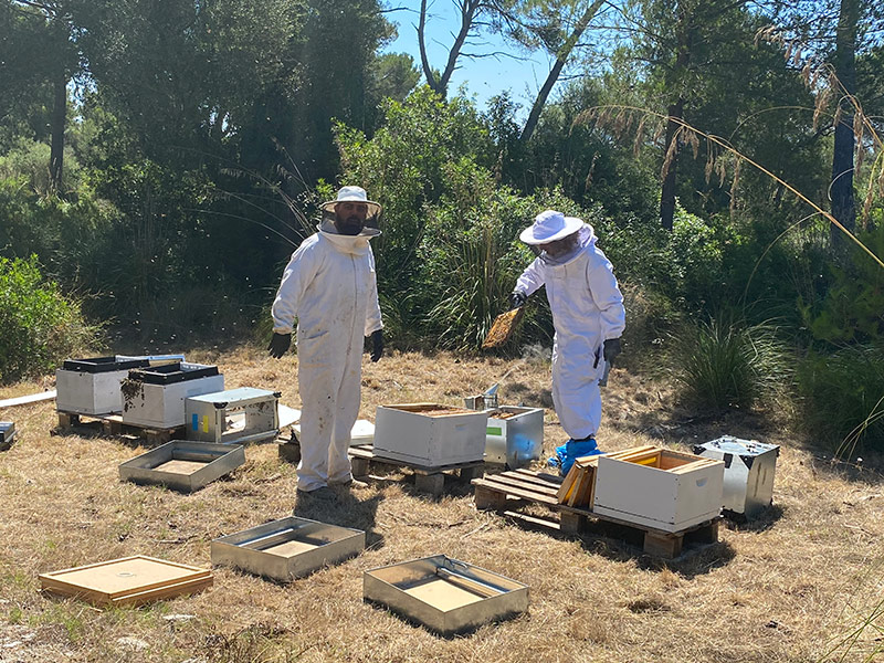 En juin, nous avons installé un total de 6 ruches aux abords du parcours, et en octobre 2021 nous avons eu notre première récolte d’environ 6 kg de miel.