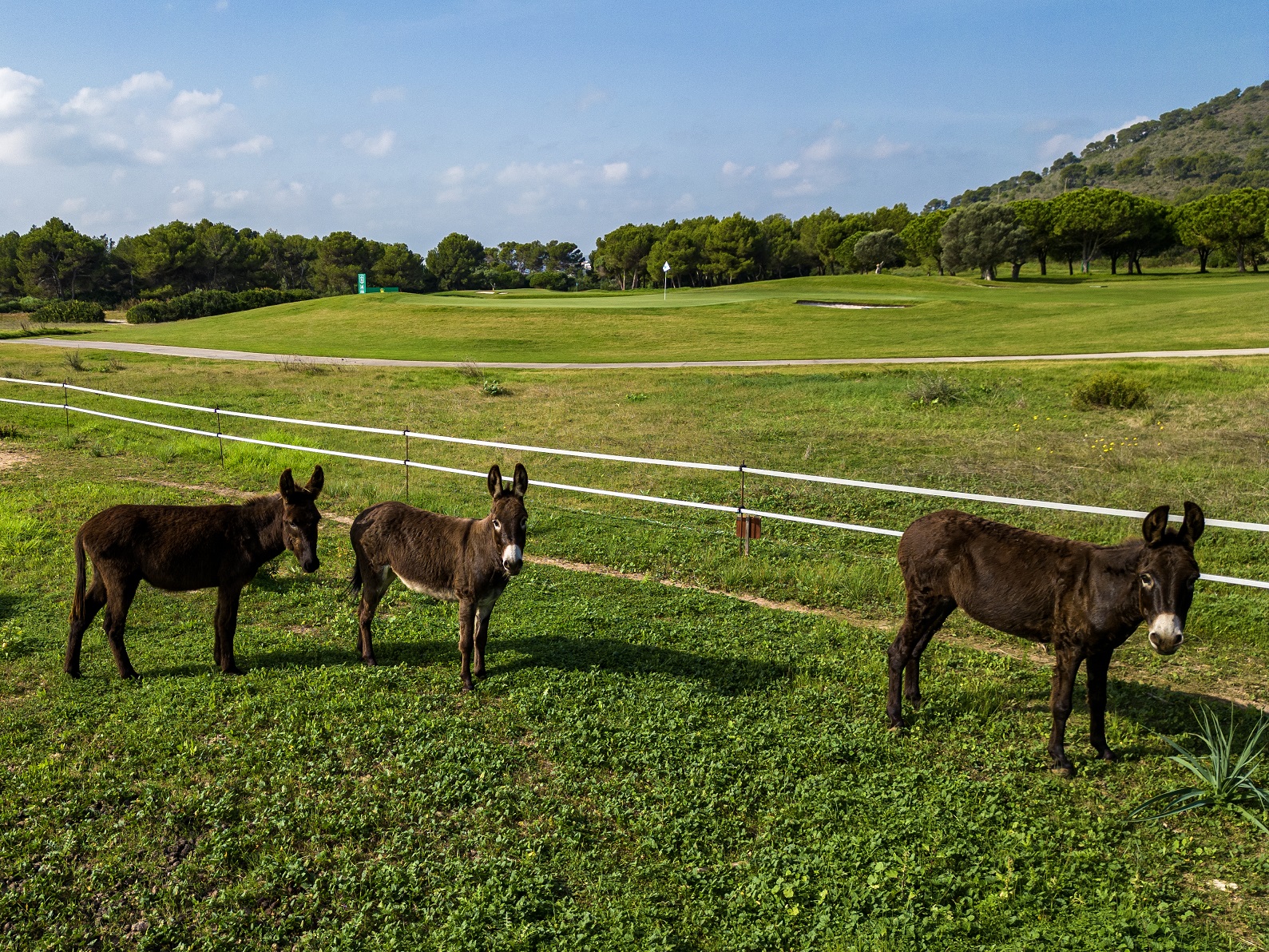 En octobre, nous avons adopté deux ânes comme nouvelle « équipe de nettoyage », chargés de débroussailler l’herbe, d’élaguer les branches et de prendre soin de la forêt dans la zone boisée du 13e trou.