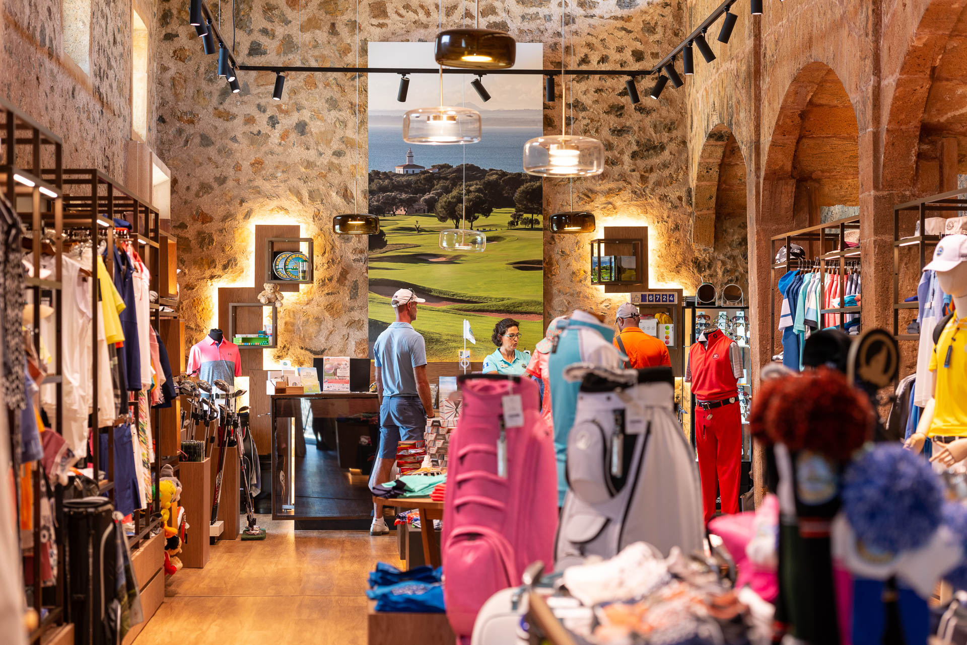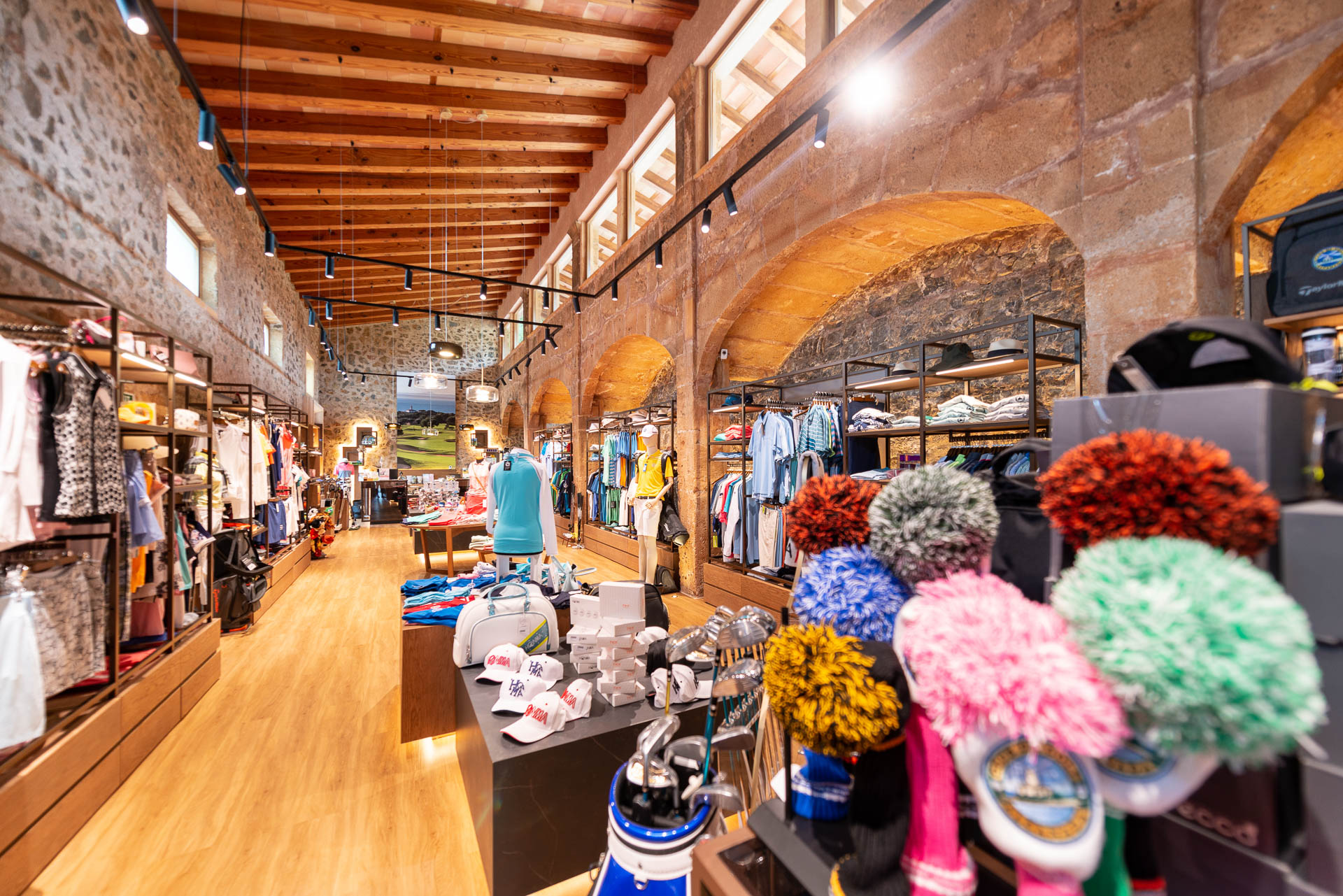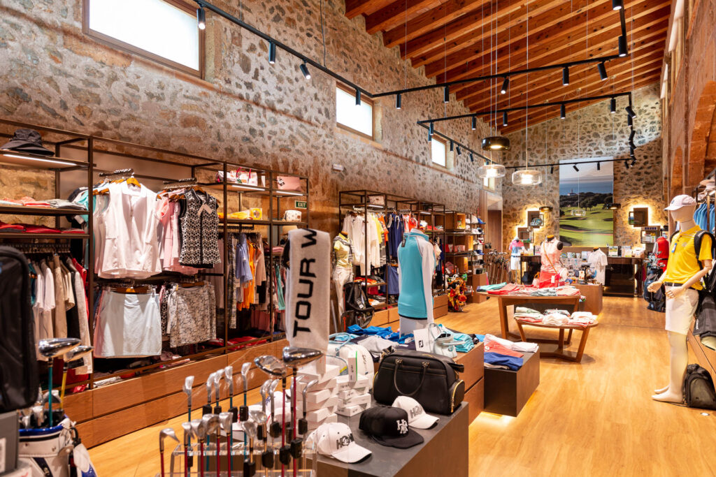 Stylish golf clothing in a beautiful atmosphere: a building over a hundred years old with stone walls in a typically Majorcan style, reminiscent of wine cellars, but stocked with clothing and accessories of the highest quality that reminds you where you are now – at the reception and the pro shop of Club de Golf Alcanada.